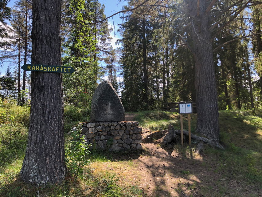 Fredsstenen är ett minne över en historisk händelse när generalmajor von Döbeln tvingade en överlägsen dansk styrka tillbaka mot norska gränsen, sedan han ställt upp sina kanoner på de höga backarna vid byn och låtit Revsunds kompani gå Mattmarvägen för att falla fienden i ryggen. Den danske befälhavaren von Grogh undertecknade inte långt från Råkåskaftet den av von Döbeln i all hast nedskrivna fredsakten. Det sägs att som skrivbord användes ryggtavlan av en svensk soldat.