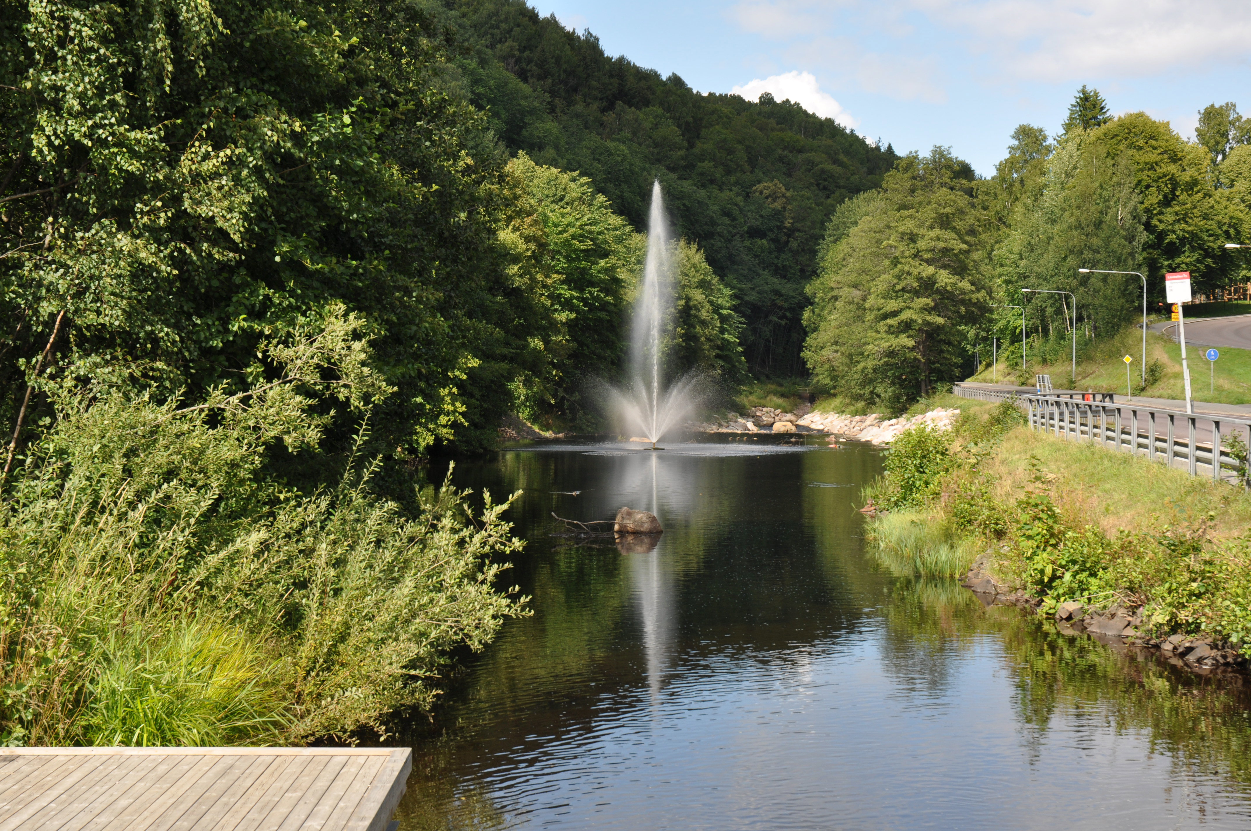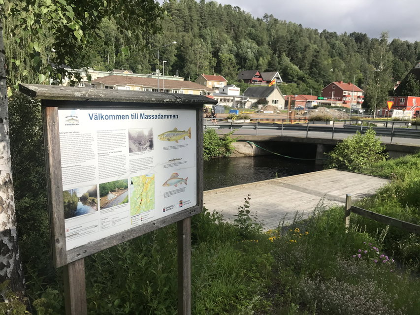 Fallet i Massadammen. Idag är dammfästet utrivet och här finns grillplats, brygga och fontän.