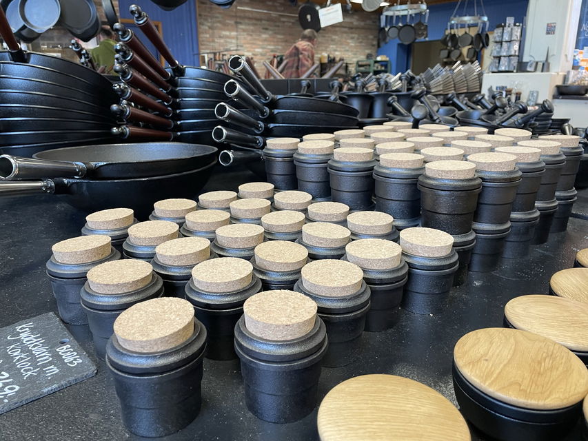 I Skeppshults outletbutik kan du fynda handgjutna stekpannor, grytor, pepparkvarnar och diverse inredningsdetaljer. Här finns också utvalda produkter och andrasortering från andra välkända varumärken t ex Kockums och Ekelunds.