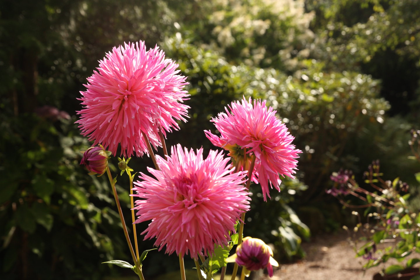 Här kan du njuta av allt från den skira vårgrönskan och magnolians blomning till sensommarens dahlior och höstens färgsprakande toner. I maj blommar gårdens över 1000 rhododendron, vilket gör perioden till en av årets mest spektakulära.