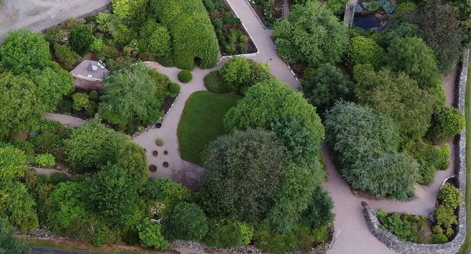 Trädgården ramas in av vackra stenmurar som tillsammans sträcker sig över mer än 200 meter och bidrar till trädgårdens unika karaktär. All sten som använts kommer från gården och har plockats upp där den dykt upp – i skogen, på åkern eller när det grävts i trädgården.