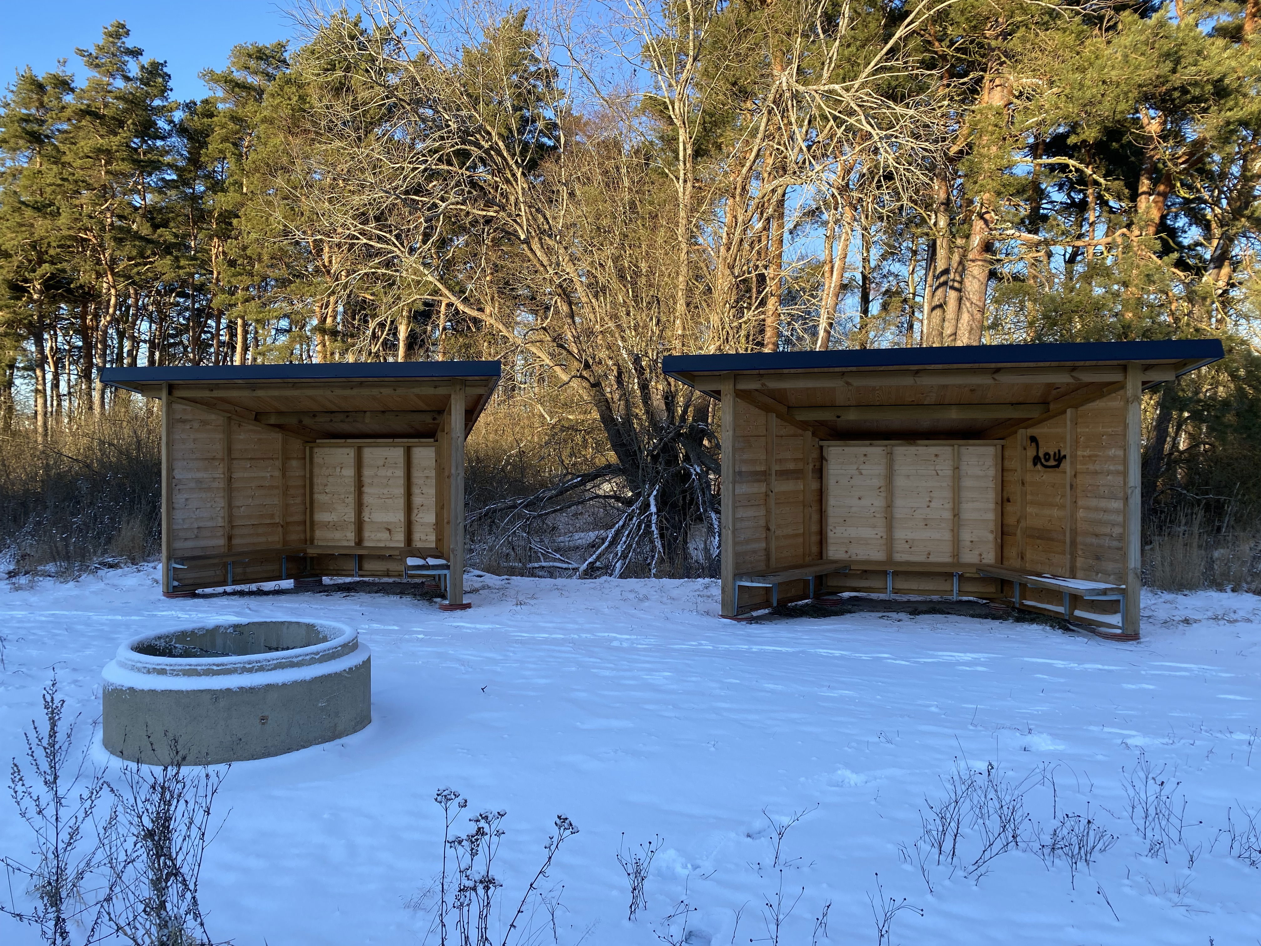 Vid foten av backen vid Södra utmarken finns en grill med tillhörande vindskydd .