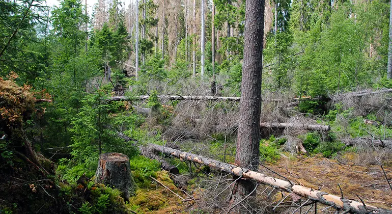 - bryta kvistar, fälla eller på annat sätt skada levande eller döda stående eller omkullfallna träd och buskar