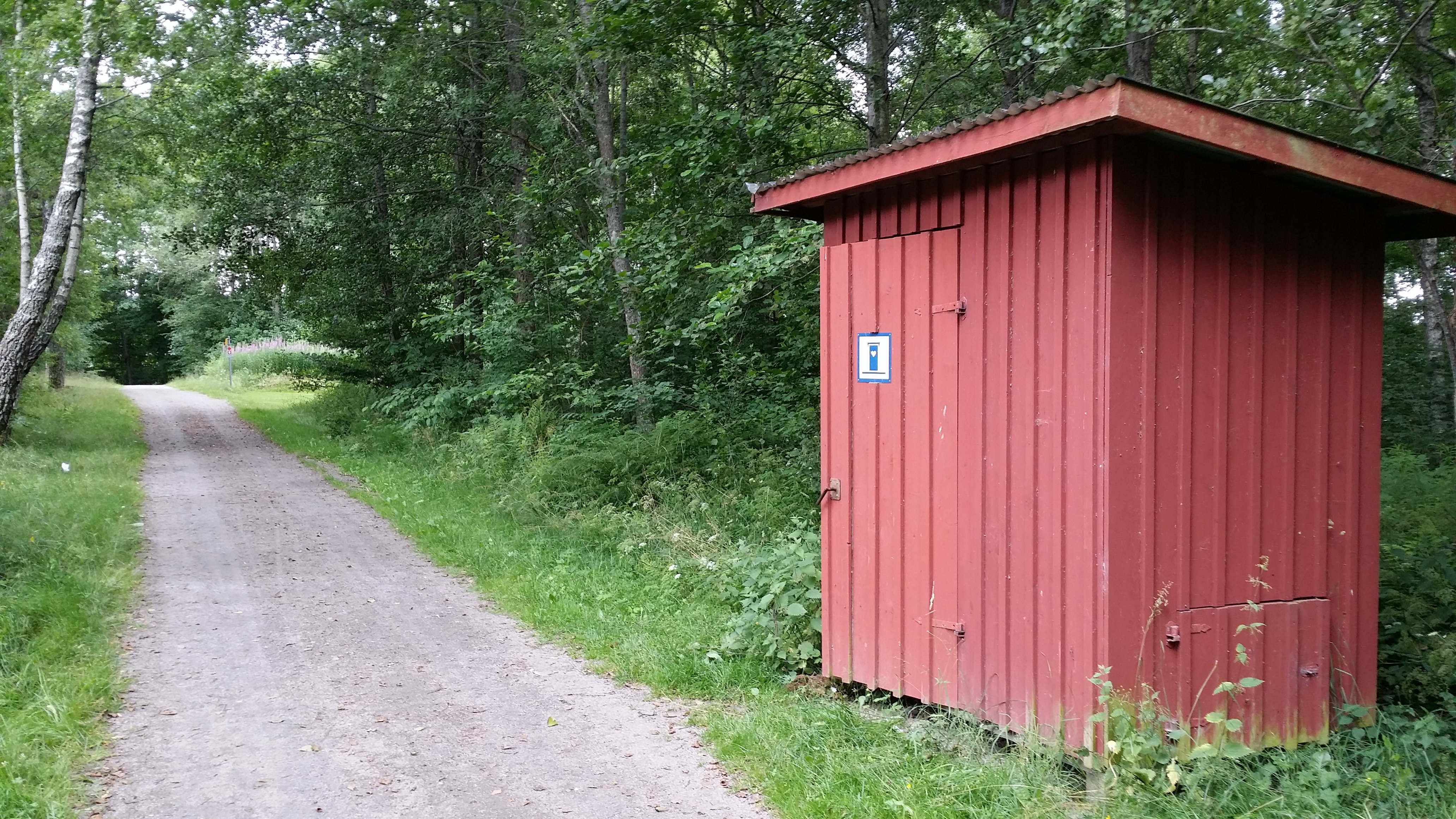 En bit norr om Araby naturreservat, i nära anslutning till slingan Växjö Runt finner du denna toalett.