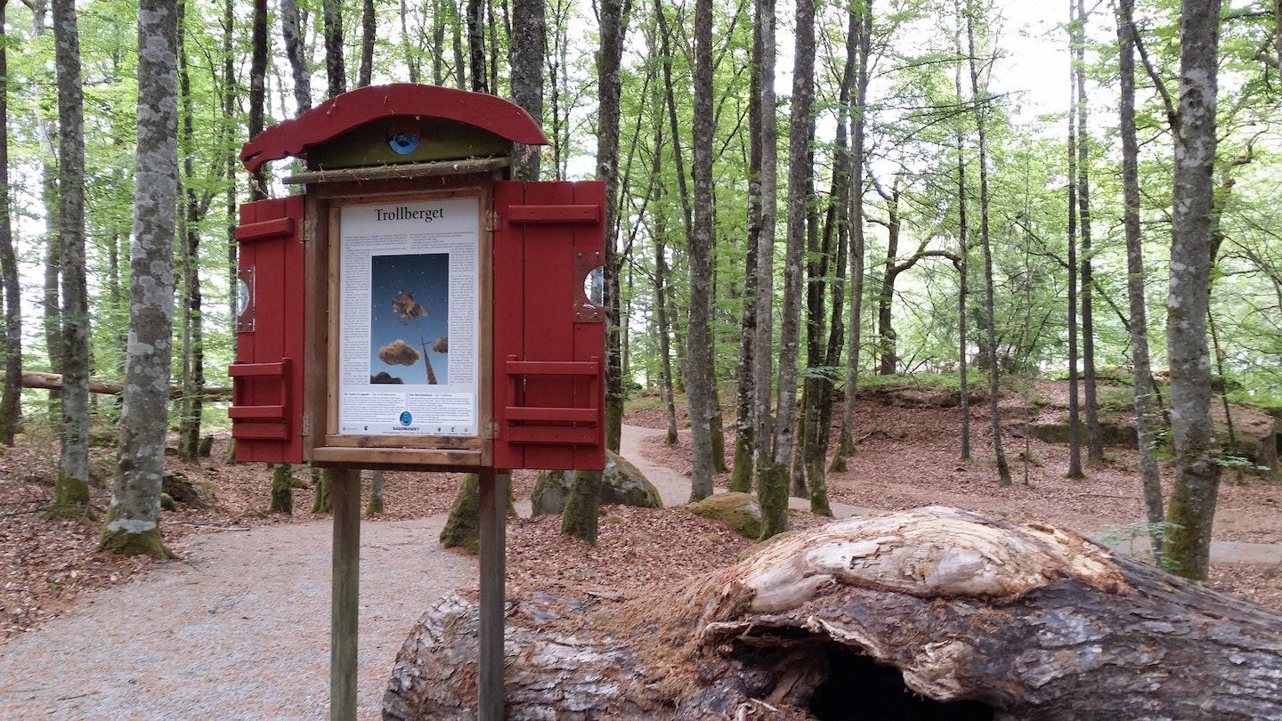 Följ slingan som heter Trollsvansen (0,3km) för att ta del av sagan vid Trollberget.