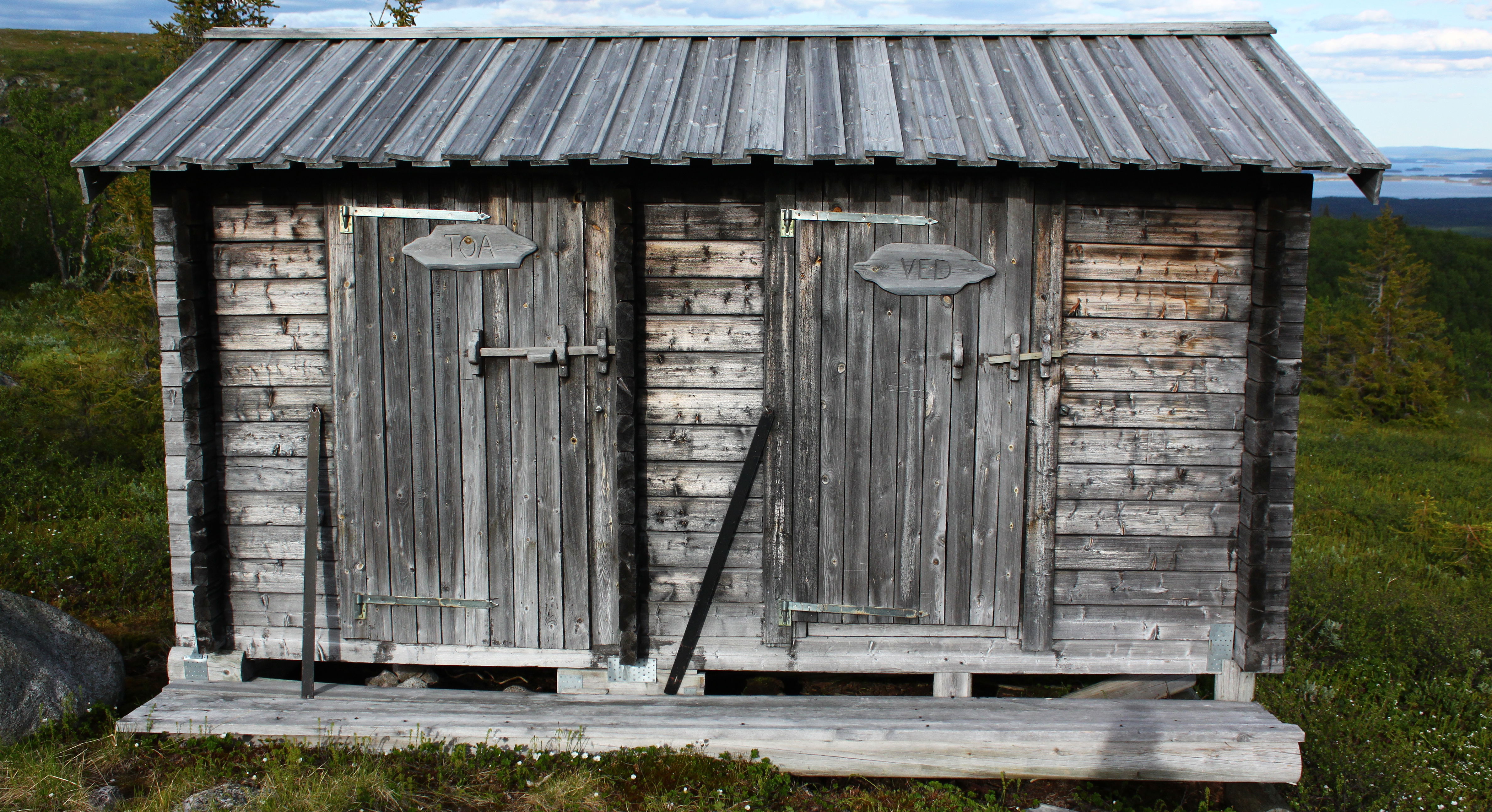 Ett enkelt dass i samma byggnad som en vedbod.