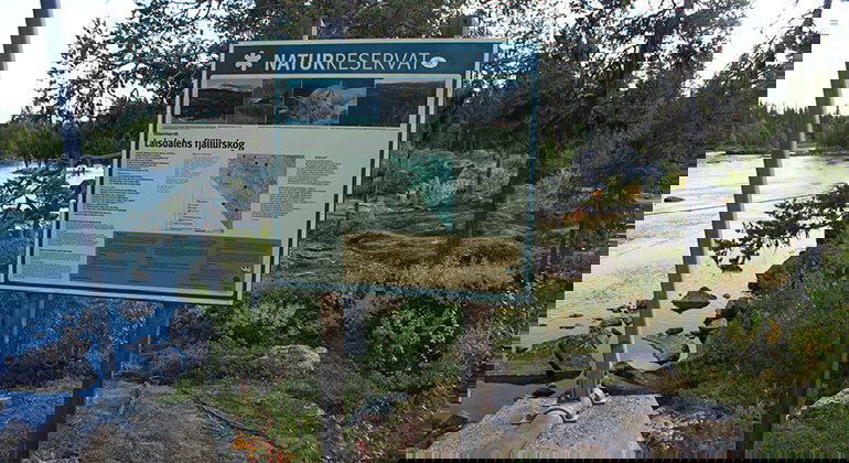 Informationsskylt om Laisdalen FUR naturreservat, vid början av leden till Delliknäs.
