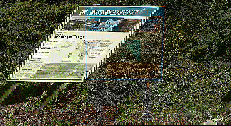 Informationsskylt Björkliden om naturreservatet Laisdalen FUR.