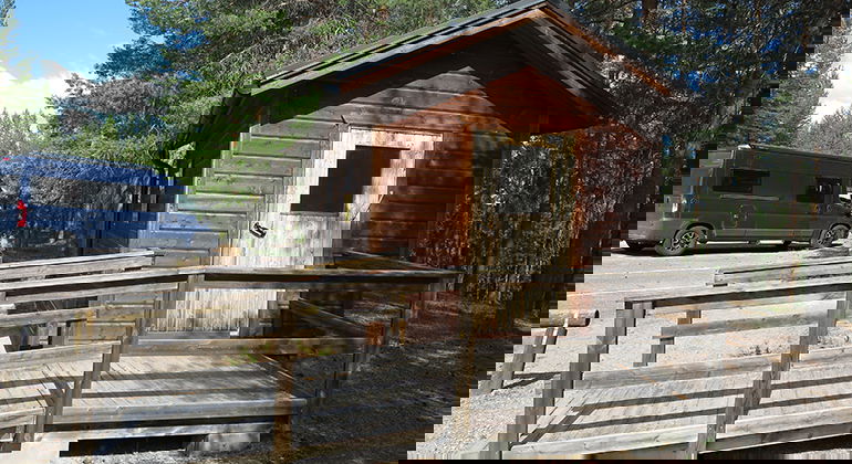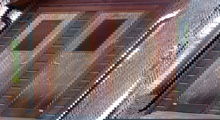 Dass med en tillgänglighetsanpassad ingång på den ena sidan och två vanliga ingångar på den andra.