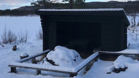 Ett vindskydd (öppet) med sittbänkar, som förvaltas av Länsstyrelsen. På platsen finns även eldstad och dass.