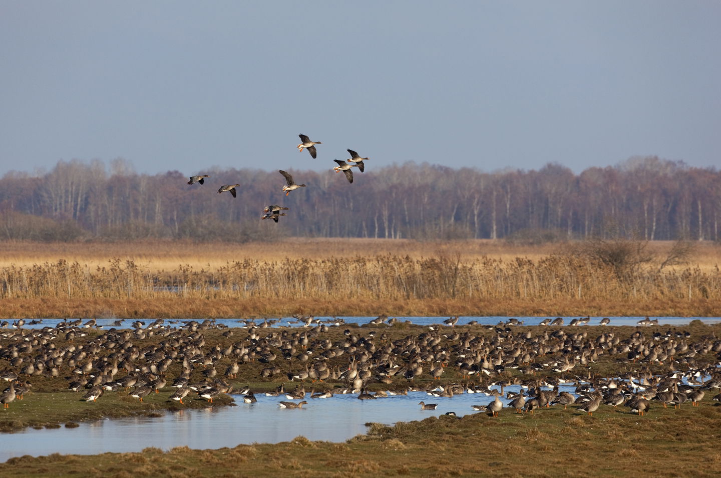 Vi kikar på svanar, gäss och andra vårfåglar.