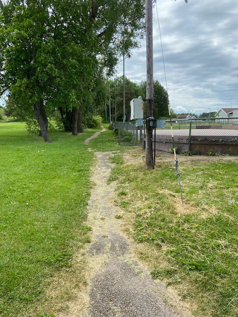 Det är inte tillåtet att cykla, åka moped eller rida i spåret. Detta regleras i §17 i lokala ordningsföreskrifterna.