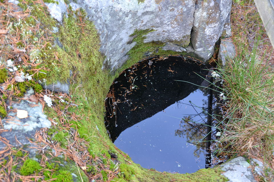 I nästan direkt anslutning till vindskyddet och grillplatsen finns ett flertal jättegrytor vid leden. Den största ligger precis vid leden och är mycket djup.