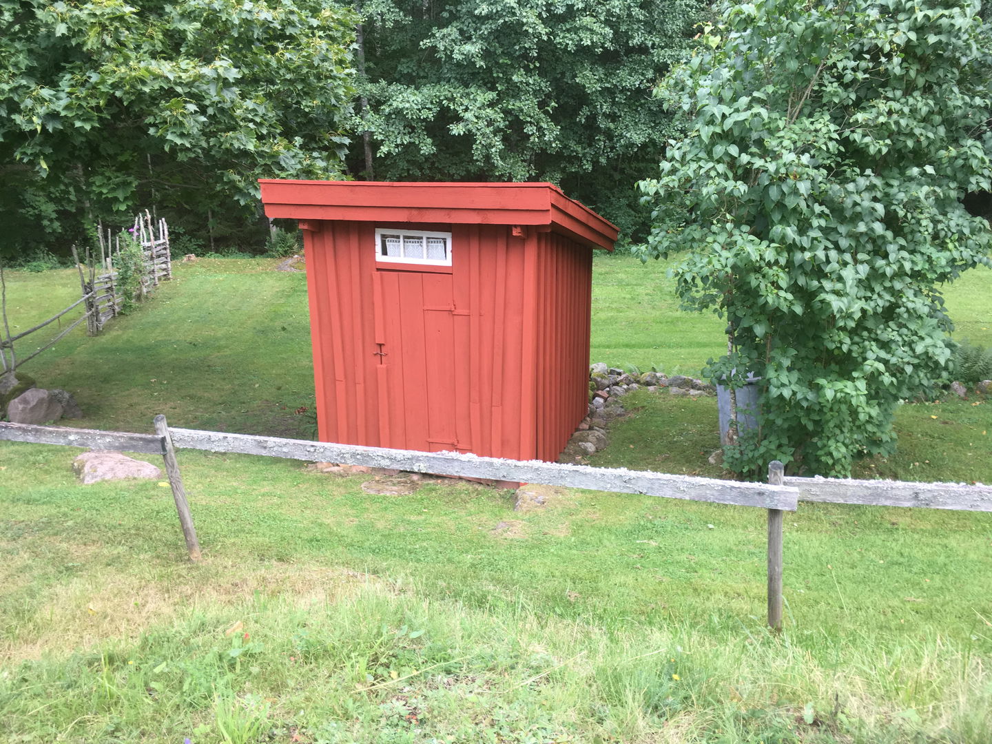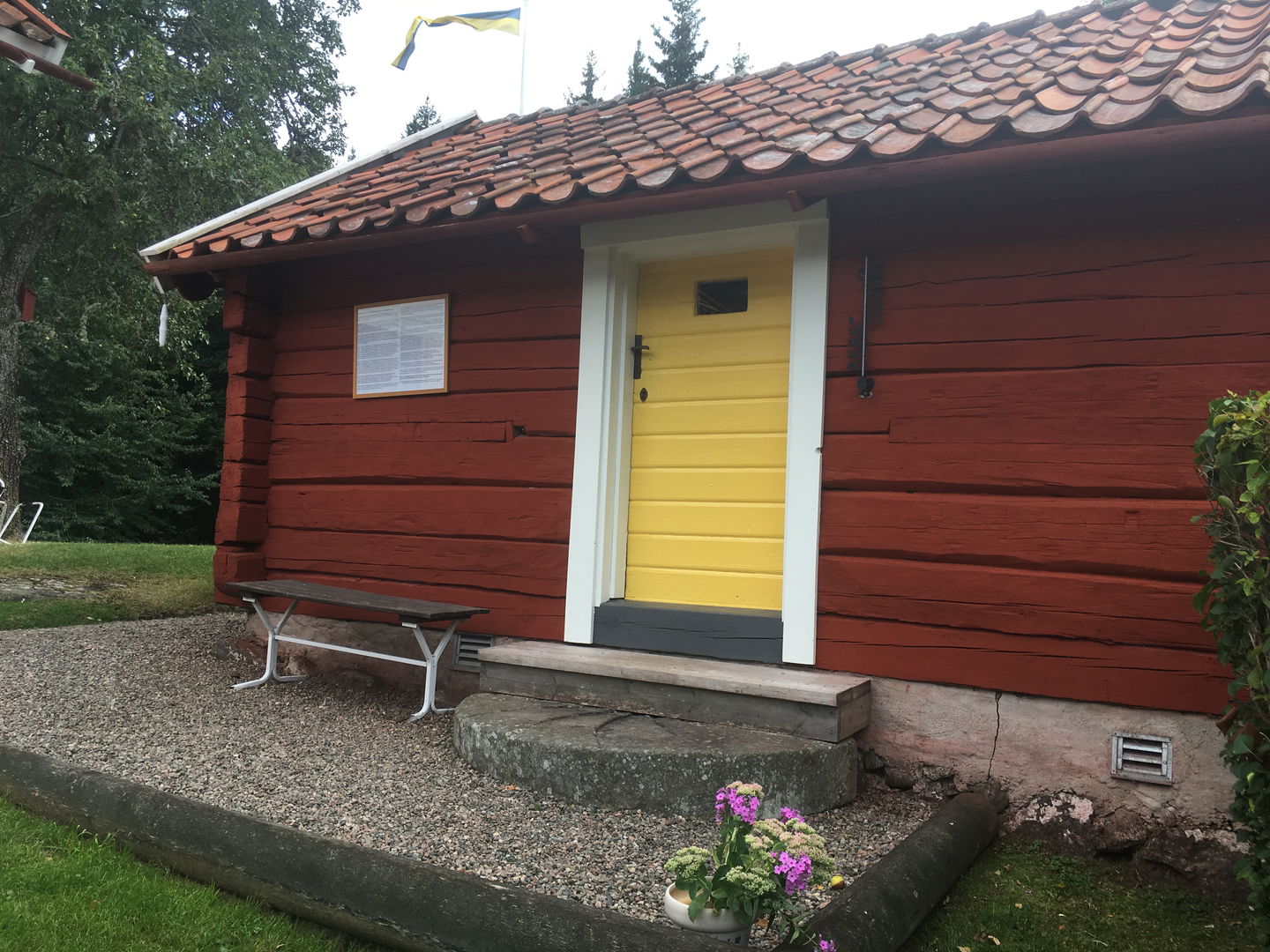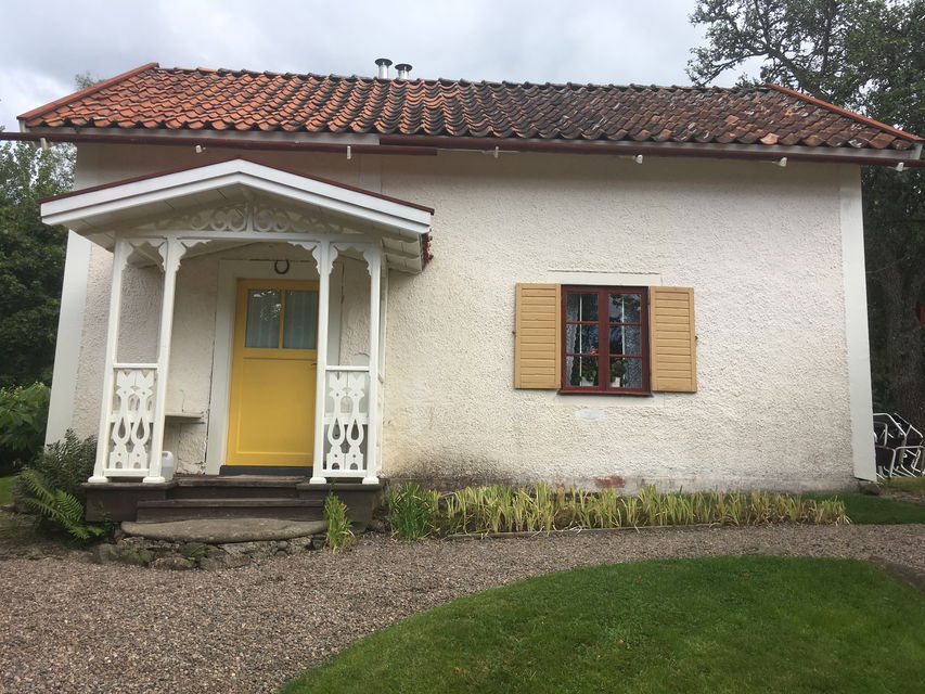 På en liten höjd utmed den gamla riksväg 50, ett par kilometer norr om Nykyrka ligger ett litet vitt torp med röda små flygelbyggnader.