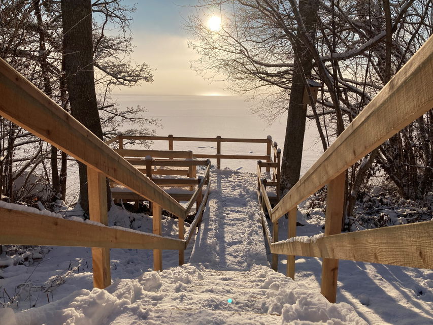 En liten utkiksplattform med en bänk med utsikt över Boren. Här kan man sitta och vila, njuta lite i solen eller ta en fika.