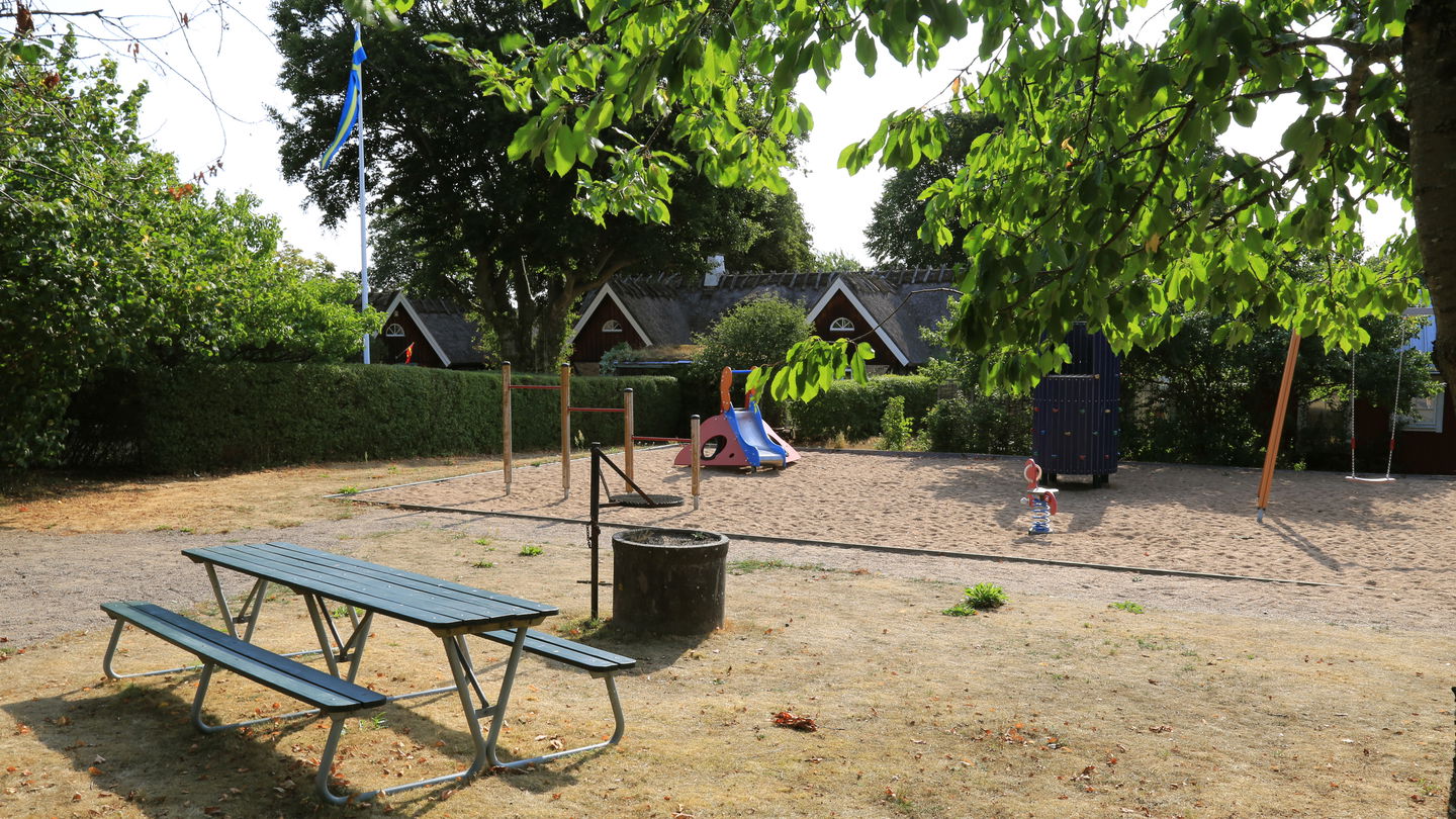 Lekplats samt grillplats längs Skärgårdsstigen. Vid grillplatsen finns bänkar och bord och grillen är upphöjd samt möjlighet hänga kokkärl för den som kanske önskar sig att koka kaffe till fikat. Vid lekplatsen finns gungor, klättertorn och rutschkana.