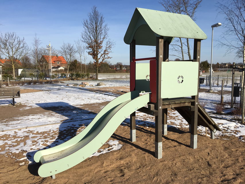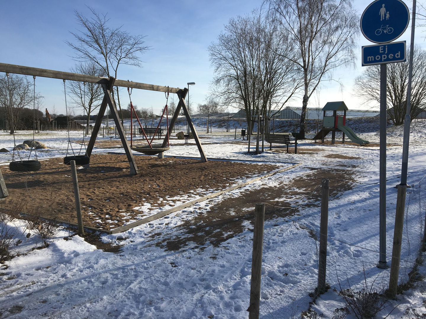 Lekplatsen ligger i Lundsbäcks grönstråk. Här kan du leka med gungor, åka rutschkana och här finns även fotbollsmål.