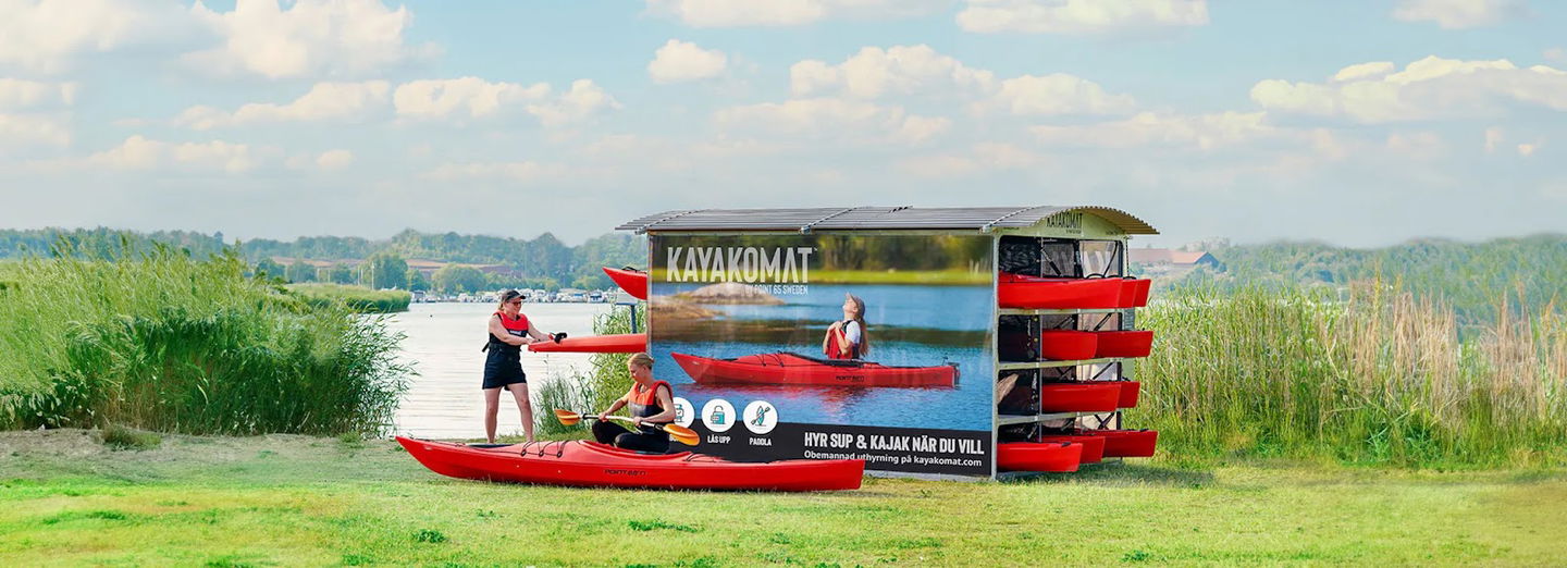 Boka, lås upp, paddla!Hyr Kajak eller S.U.P. när du vill med självbetjäning från en Kayakomat. Flytväst och paddel finns i kajaken. Kayakomaten är öppen dygnet runt.
