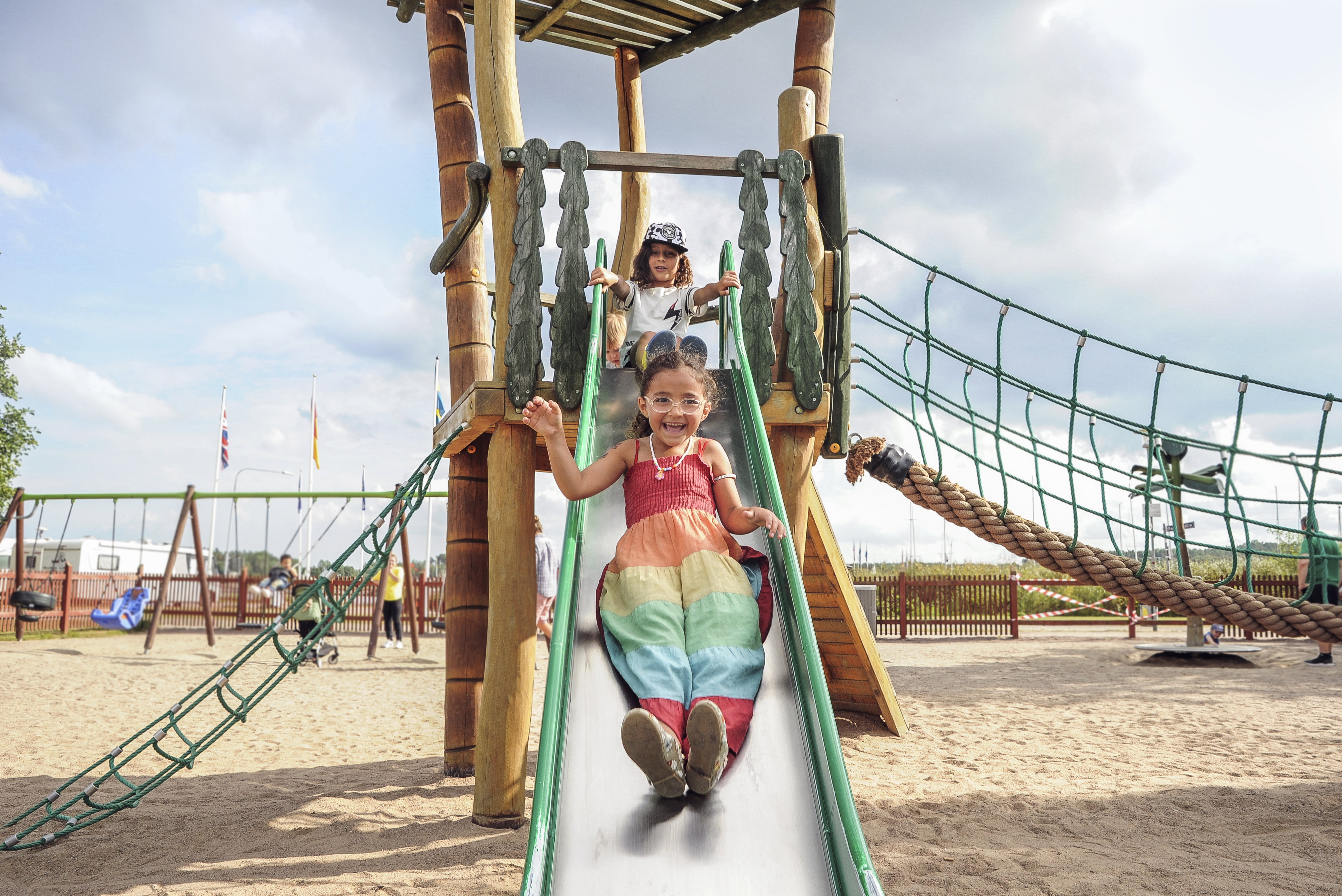 Här finns gungor, klätternät, slänggungor, gunghästar och ett stort piratskepp.