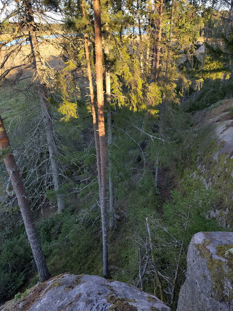 Detta bänkbord har en mycket vacker utsikt över området. Placerat på en höjd. Sista 50 m är en knappt skönjbar brant stig.