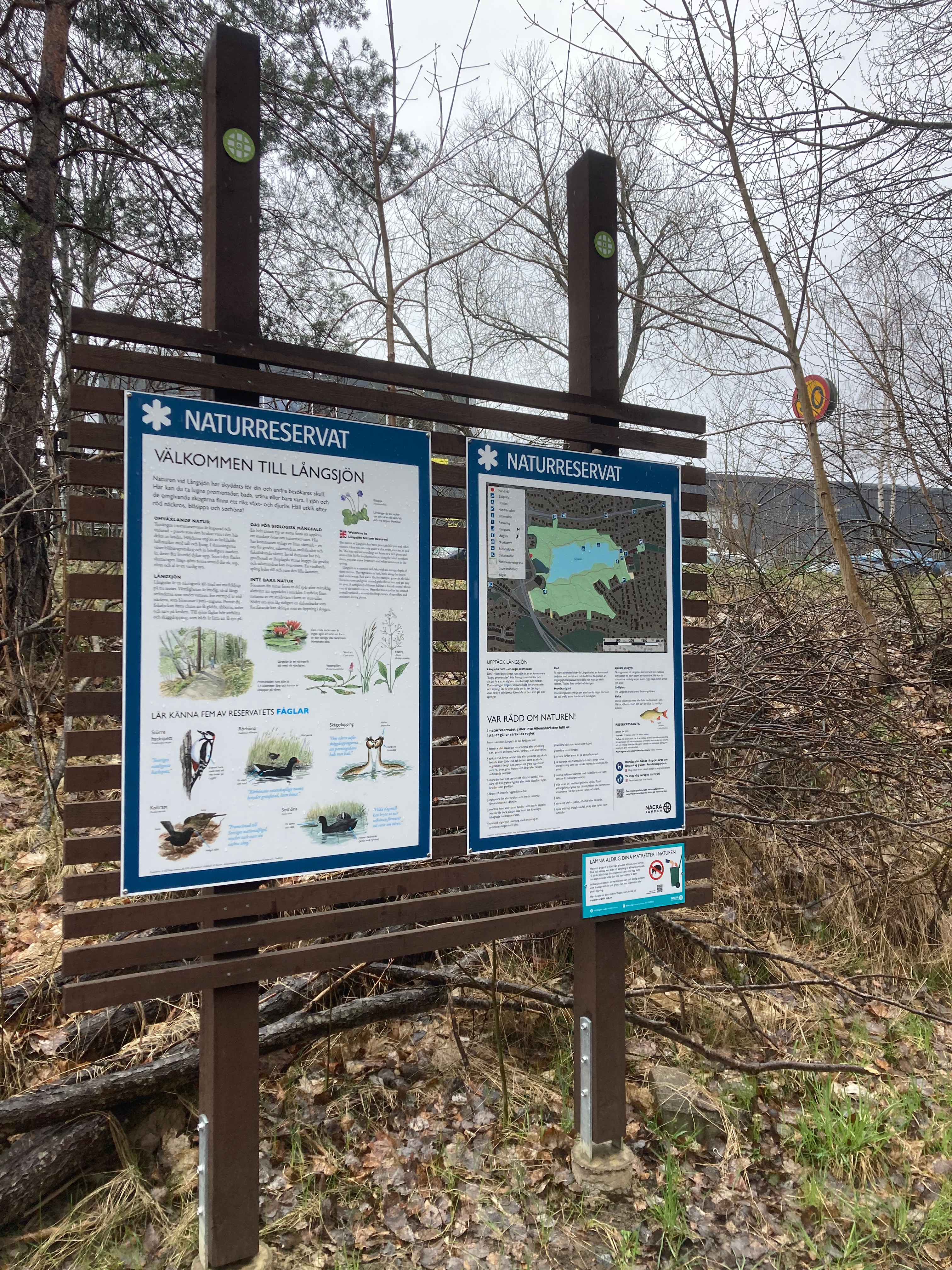 informationsskylt vid entré Vattenverksvägen till Långsjön naturreservat