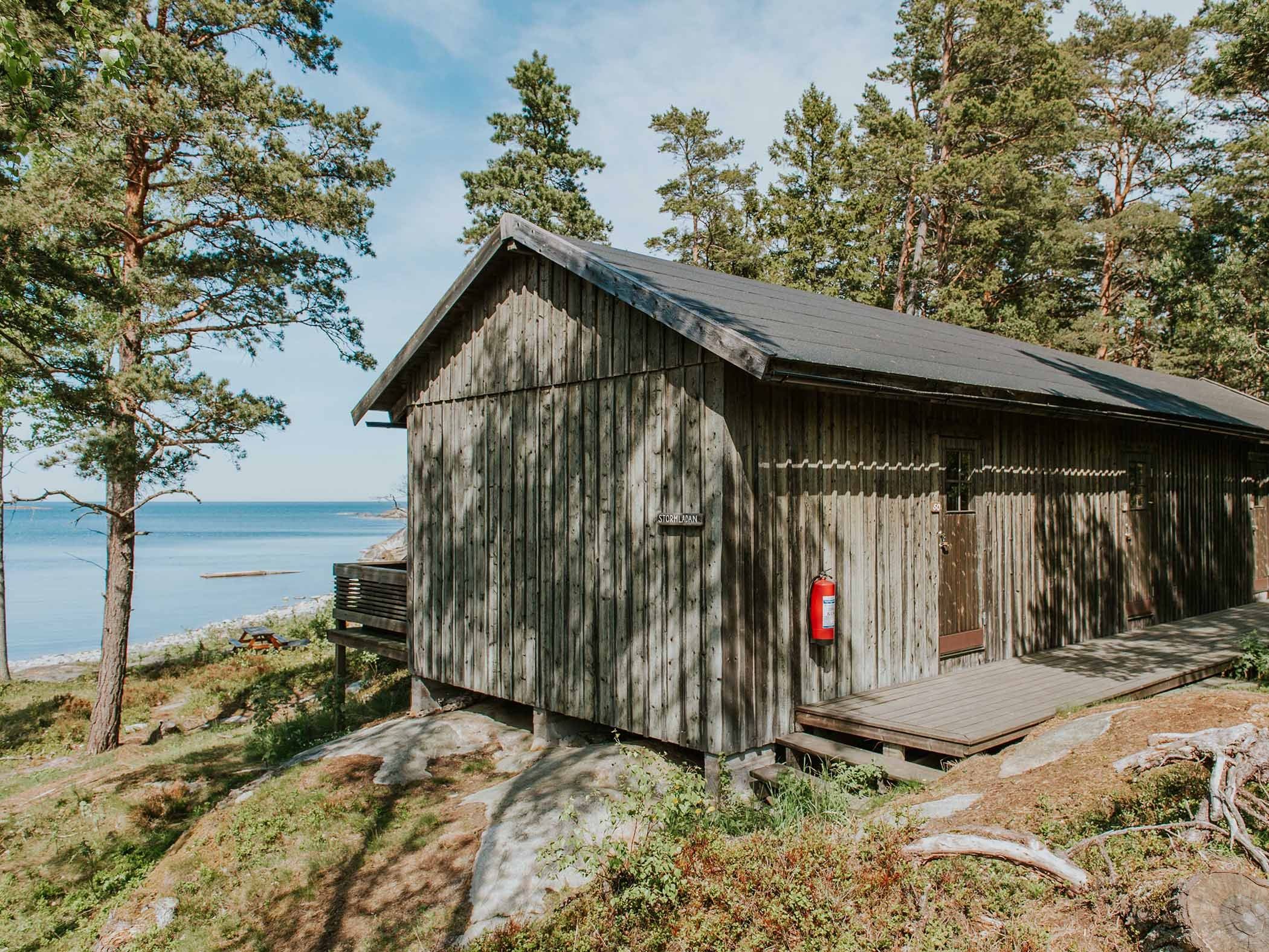 Rummen är fördelade i flera mindre byggnader där olika rumstyper finns att välja mellan, från enkelrum till familjerum med plats för upp till fem personer. Alla med utsikt över skog eller vatten och med toalett och dusch i korridoren. I Sjöstugan och Stormladan är det möjligt att bo med hund mot en liten avgift.