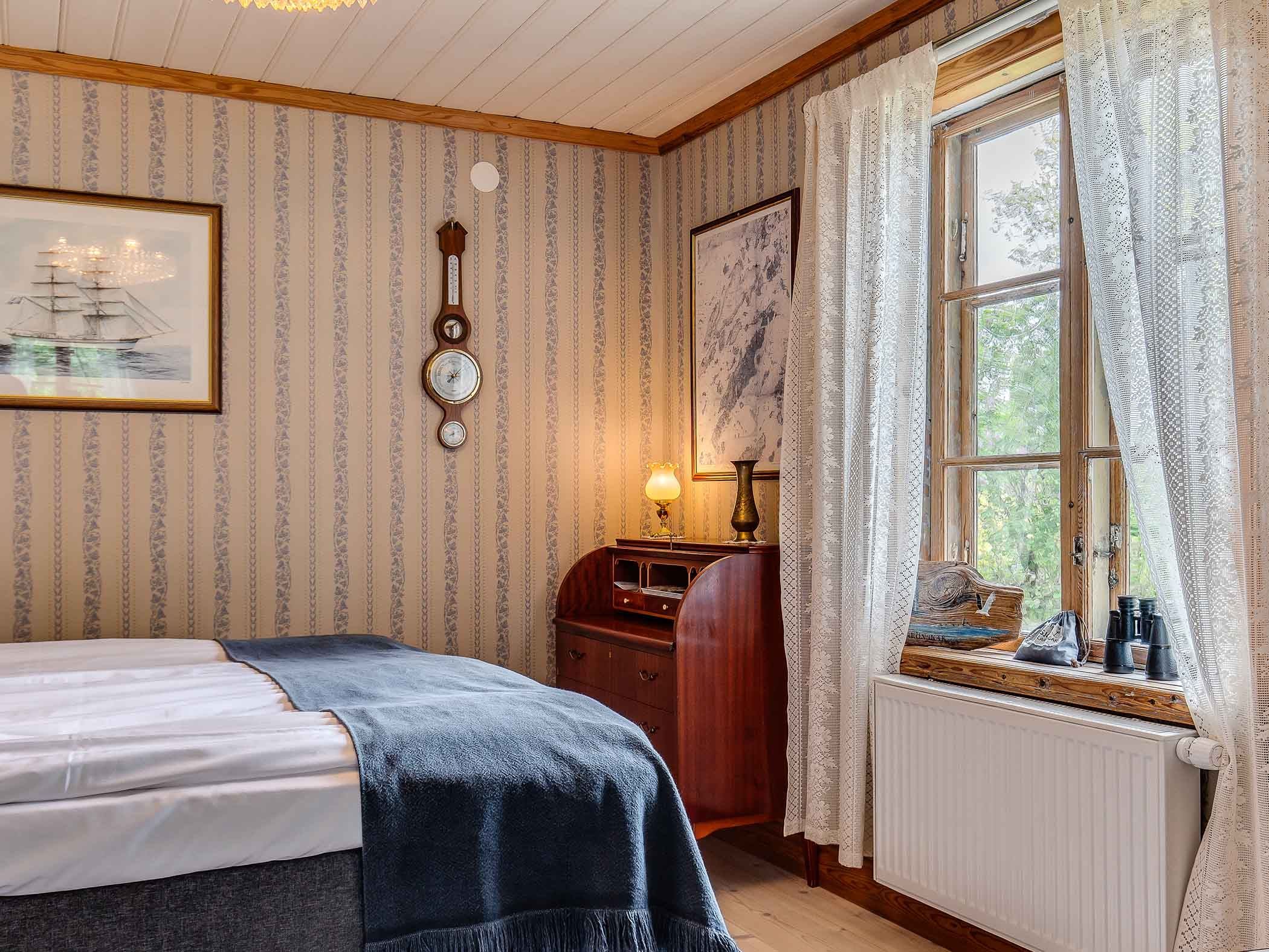 Hos oss bor ni i varsamt renoverade och vackert inredda rum med den genuina skärgårdskänslan. De flesta av rummen har utsikt över havet och de gemensamma små punschverandorna är underbara att sitta i och bara njuta av skärgårdslivet som långsamt passerar precis utanför. det finns även fullt utrustat gemensamt kök där ni kan lagar frukosten samt övriga måltider. På tomten finns också ett enklare utekök med gasolgrill och kokmöjlighet att tillgå. Den 180-gradiga utsikten över havet härifrån är svårslagen.