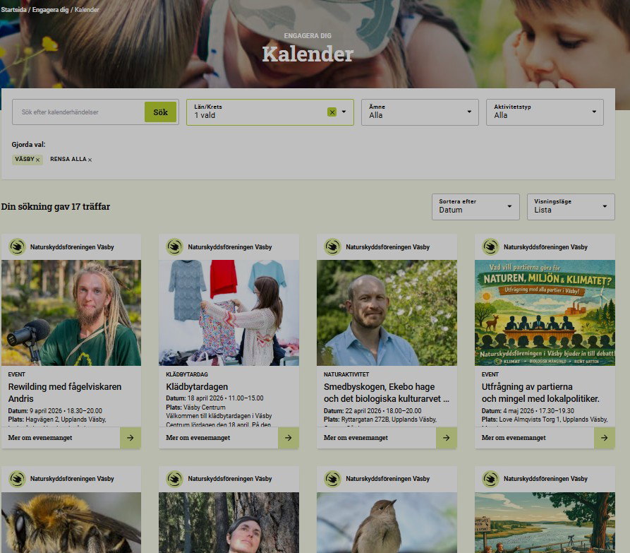 Klicka här för att komma till Naturskyddsföreningens i Väsby aktivitetskalender.