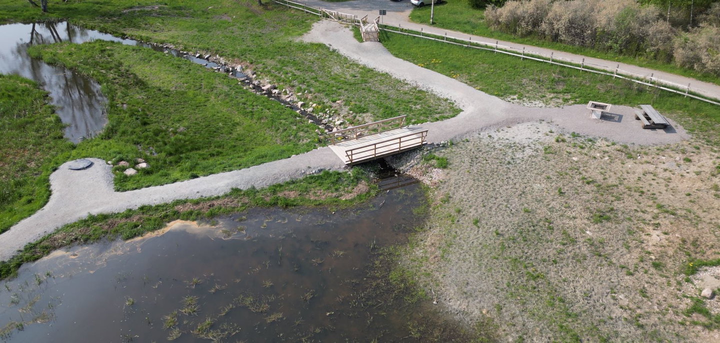 vid Bollstanäs skola bakom fotbollsplanen. Därifrån är det cirka 12 minuter promenad till våtmarken. Vägbeskrivning