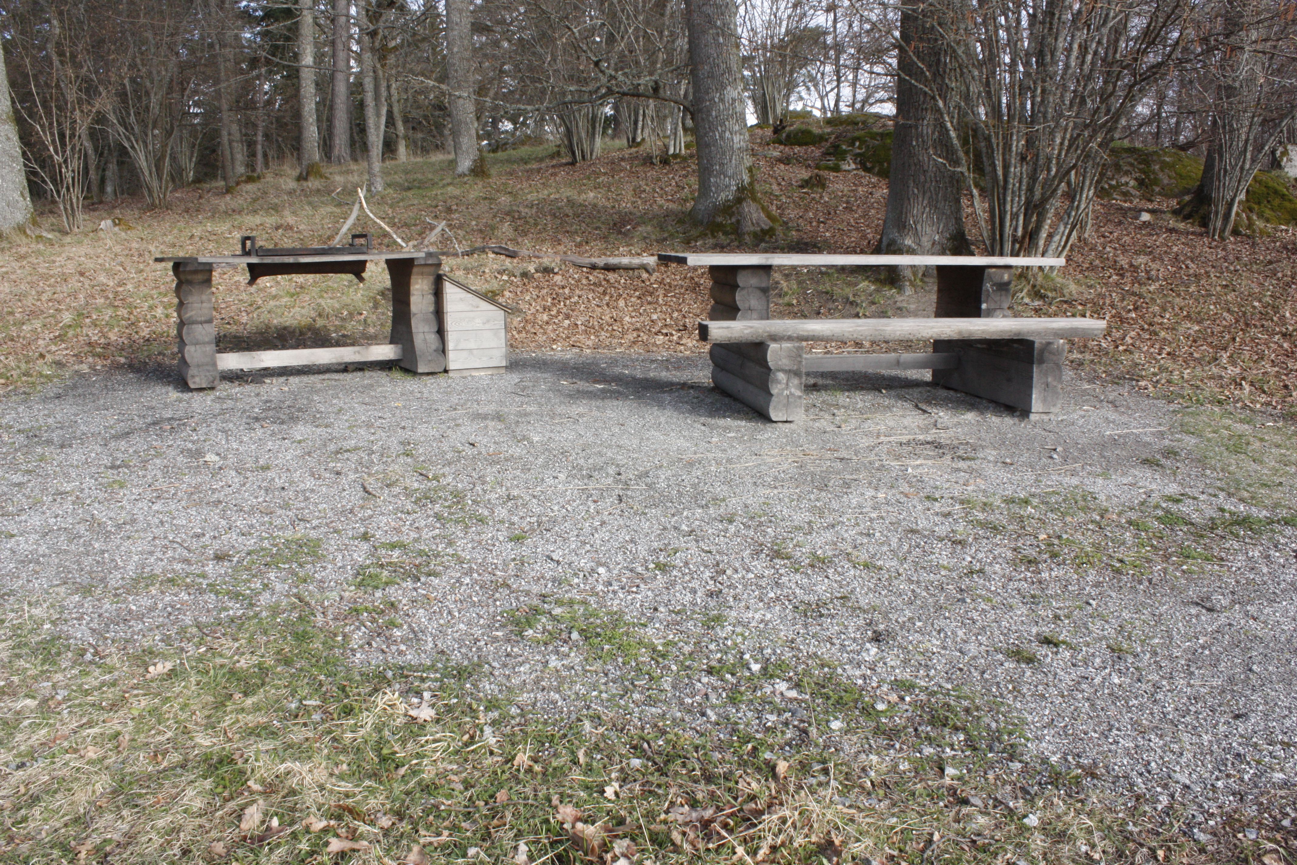 Tillgänglighetsanpassad rastplats med grillbord. Grillplatsen ligger ungefär 100 m från parkeringen och toalett. Du kommer hit via en hårdgjord stig. Du behöver passera genom en självstängande grind. Om du vill grilla behöver du ta med egen kol.