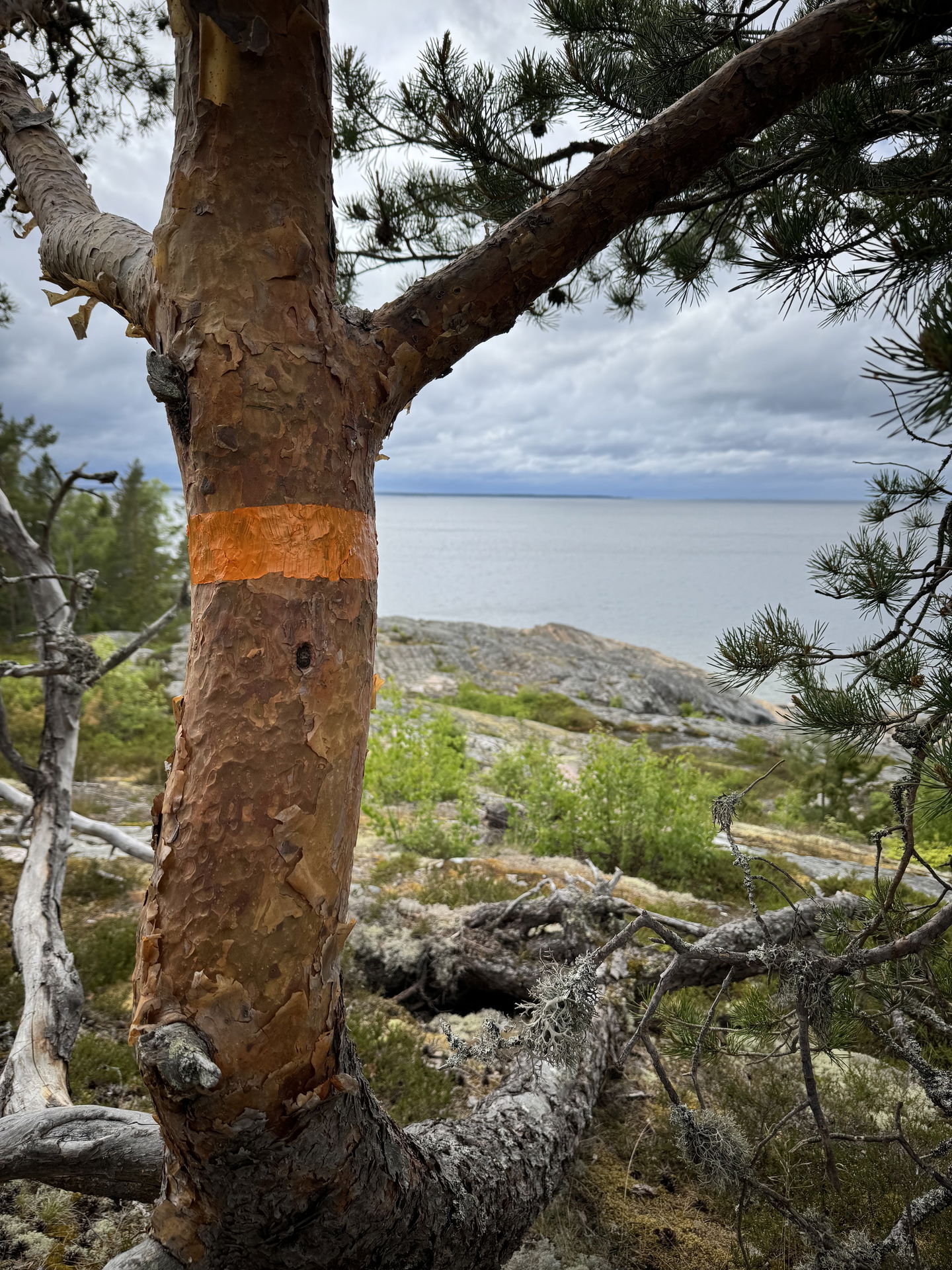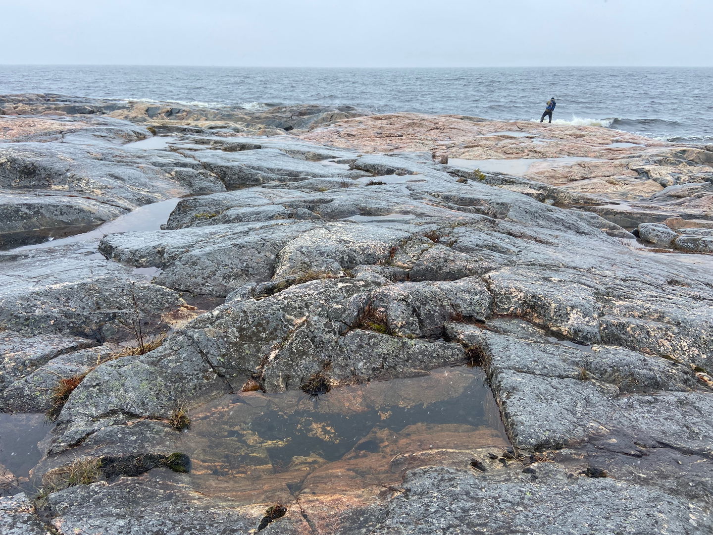 Rossholm är ett före detta militärt skjutfält. Här följer leden grusvägen i en dryg kilometer innan den viker av till vänster in i skogen. Precis när du kommer fram till havet finns fina klipphällar som passar bra för en fikarast.