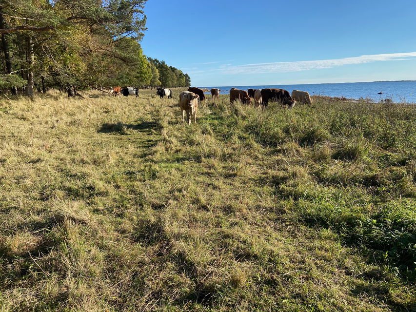 Maren: Här kan du se hur ett skärgårdshemman såg ut förr i tiden. De öppna markerna sköttes som ängsmark vilket var viktigt då det gav mat till djuren under vintern.
