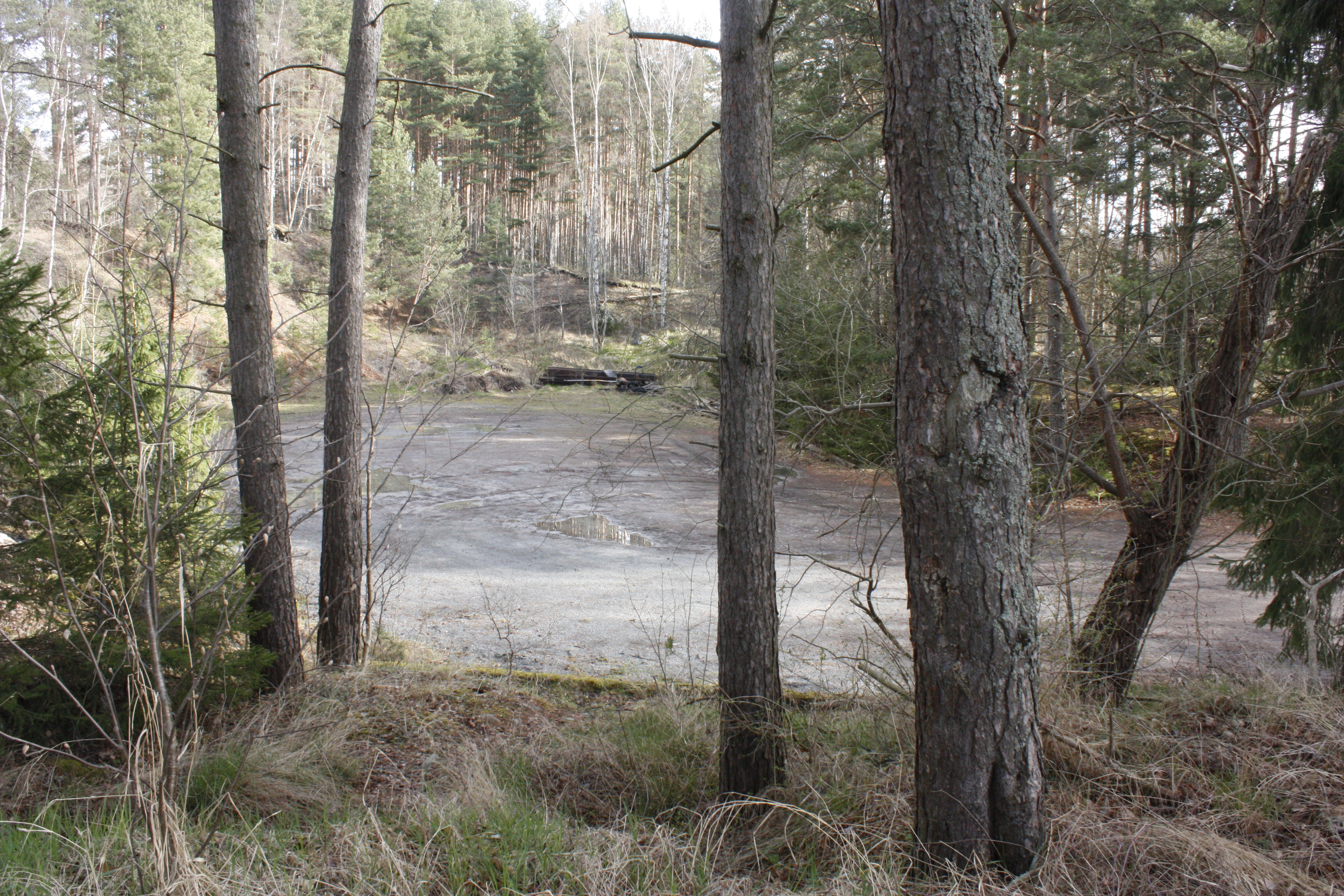 Stor parkeringsplats i gammalt grustag vid småbåtshamnen.