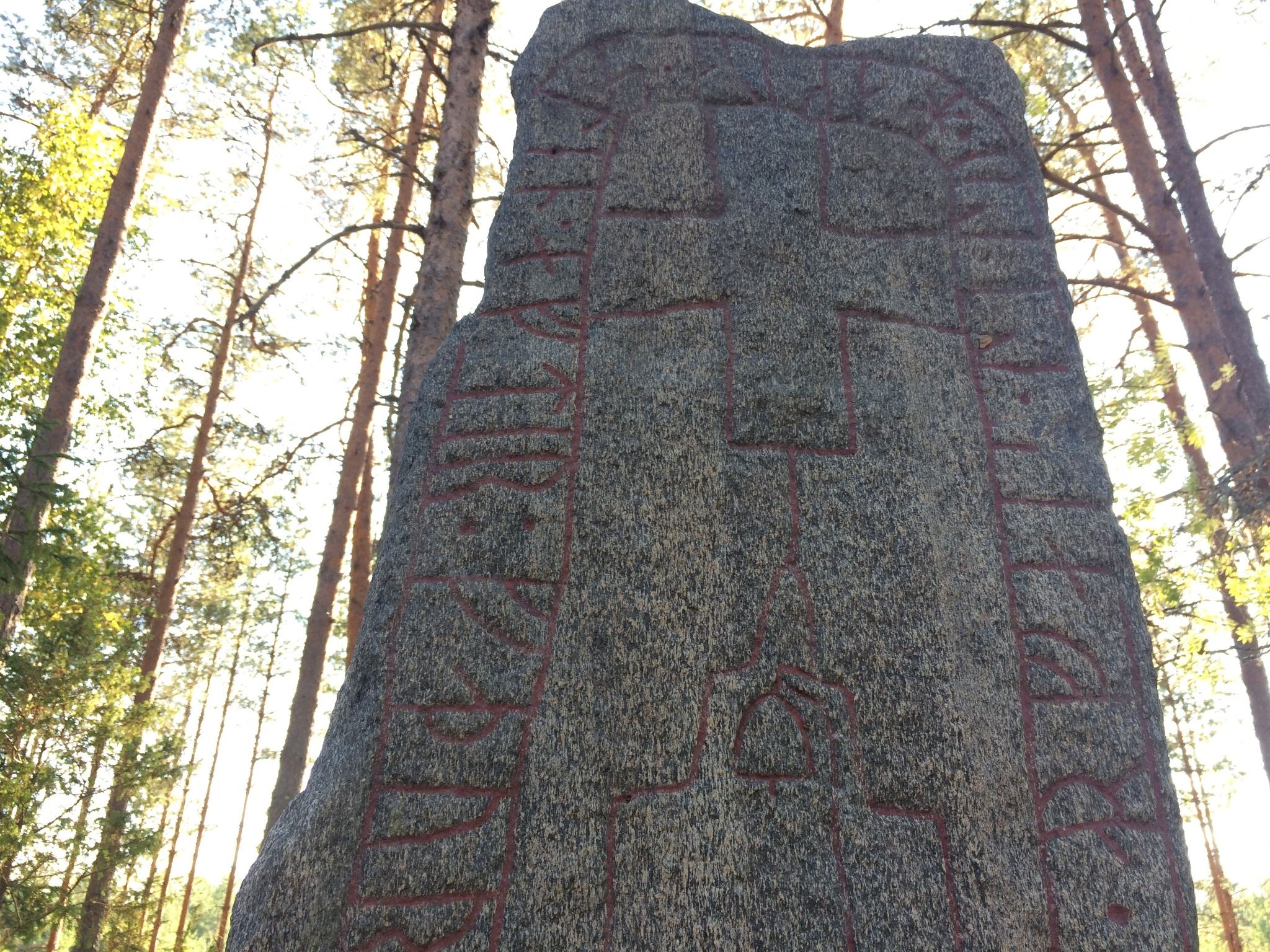 På runstenen finns en klockstapel och ett klocktorn avbildat. Ristningen är en av de allra första avbildningarna av en kyrklig byggnad och stenen är av gnejsgranit.
