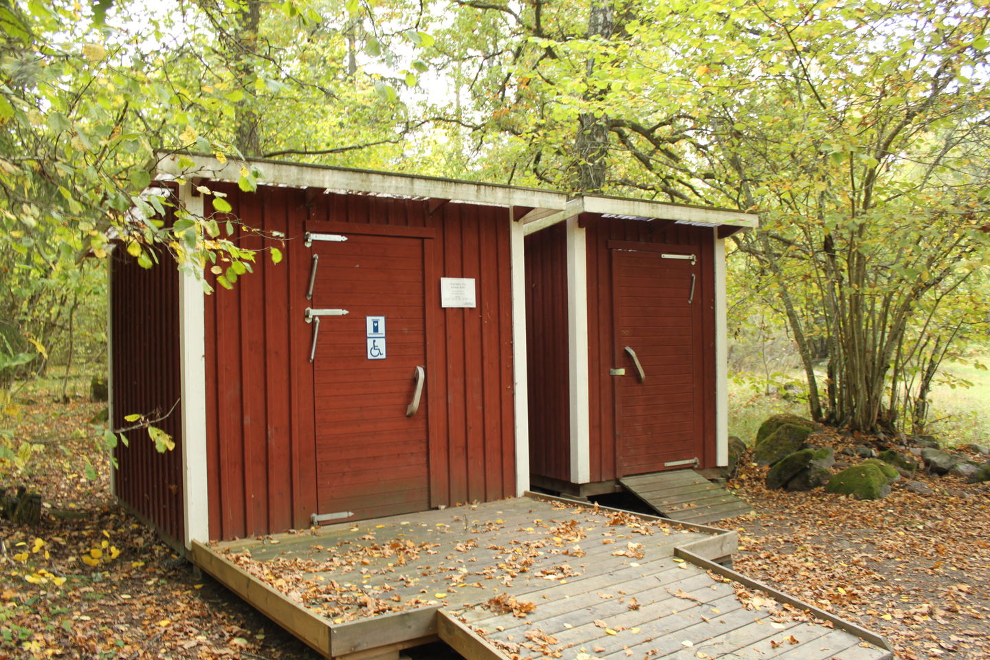Två torrtoaletter i södra delen av naturcampingen på käppbacken. Den ena är tillgänglighetsanpassad.