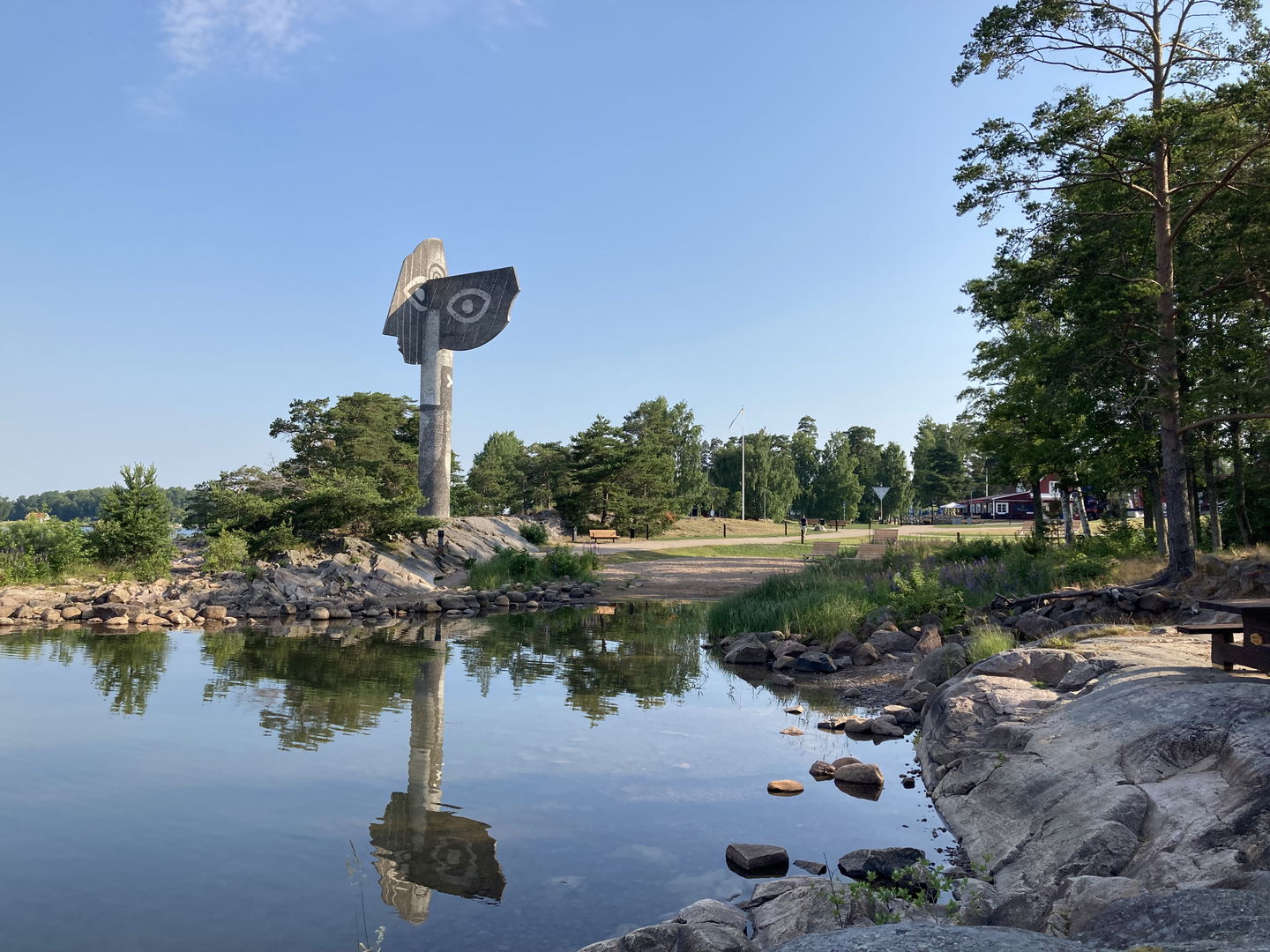 Väl framme vid världens högsta monumentala skulptur av Pablo Picasso ska du passa på att parkera cykeln och gå till båda utsiktsplatserna där du får ett helt annat intryck av skulpturen. Du kan alltså både se skulpturen från sjösidan och från land blickandes mot horisonten.
