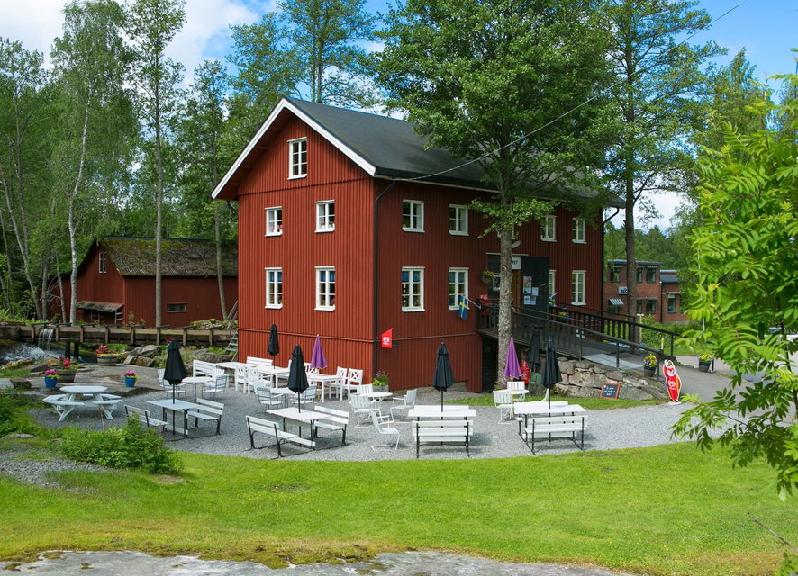 Under takbjälkarna i den gamla kvarnen avnjuter du härlig fika och goda maträtter i gammaldags miljö. Du kan även slå dig ner på den stora uteserveringen - kanske direkt vid bäcken som driver de gamla kvarnhjulen. À la carte, fika, glass och annat gott står på menyn.