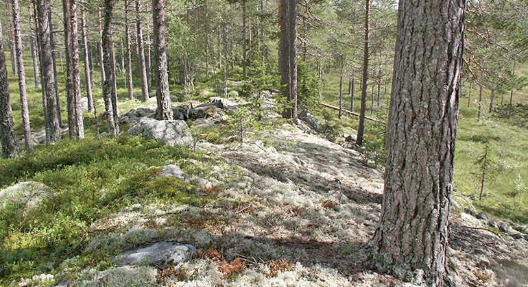 Naturreservatet består av ett flertal naturtyper; myrmosaik, hänglavrik gammelgranskog och hällmarksskog
