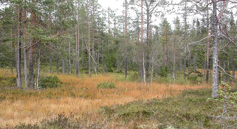 Skogen på moränåsar i myren är brandpräglad och innehåller gott om gamla tallar och lövträd, medan skogen på bergssluttningen till stora delar är källpåverkad ängsgranskog med förekomst av högörter som fjälltorta och kransrams.