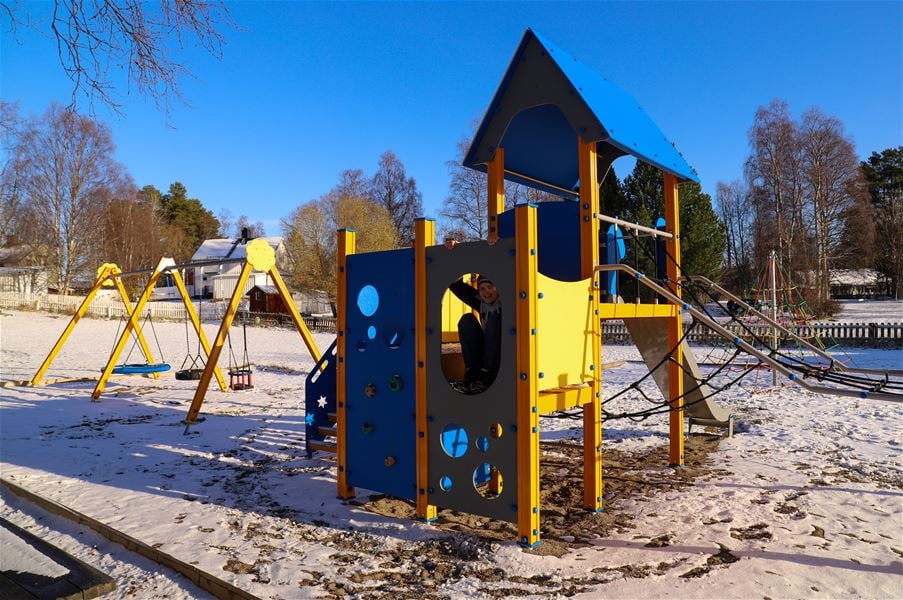 I anslutning till ett grönområde på Vallnäs ligger en klassisk lekplats med lekutrustning som passar även mindre barn med bland annat en "bebisgunga".