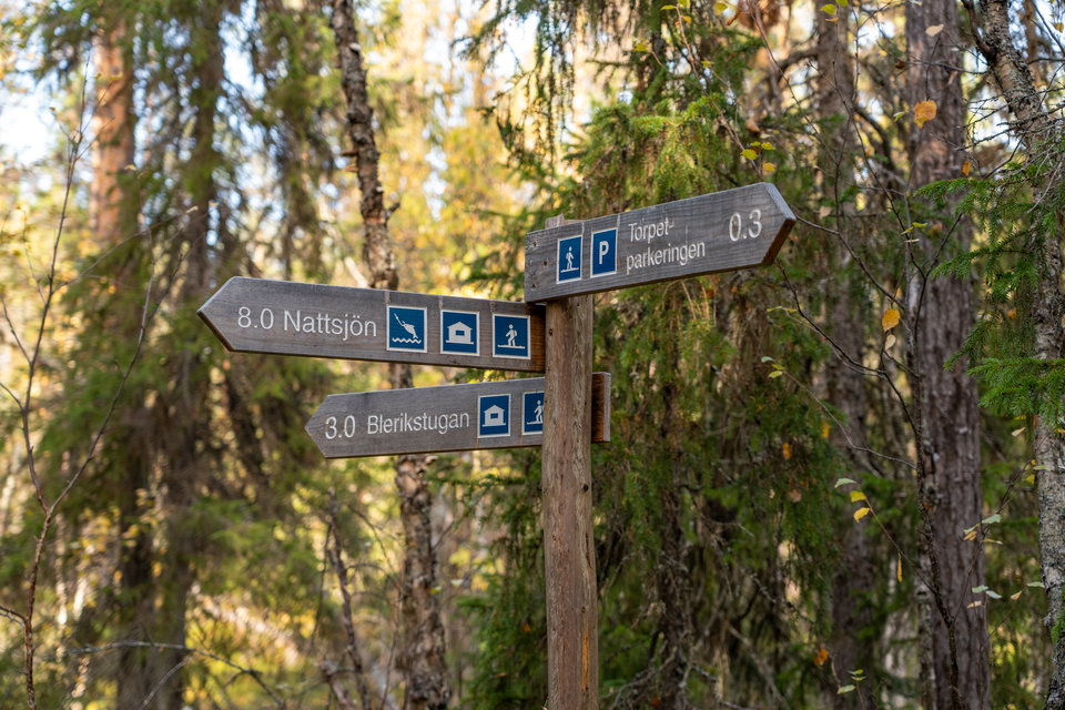 Efter en vandring på 5 km är du framme vid Nattsjöstugan, vackert belägen vid sjön. Här finns möjlighet till övernattning.