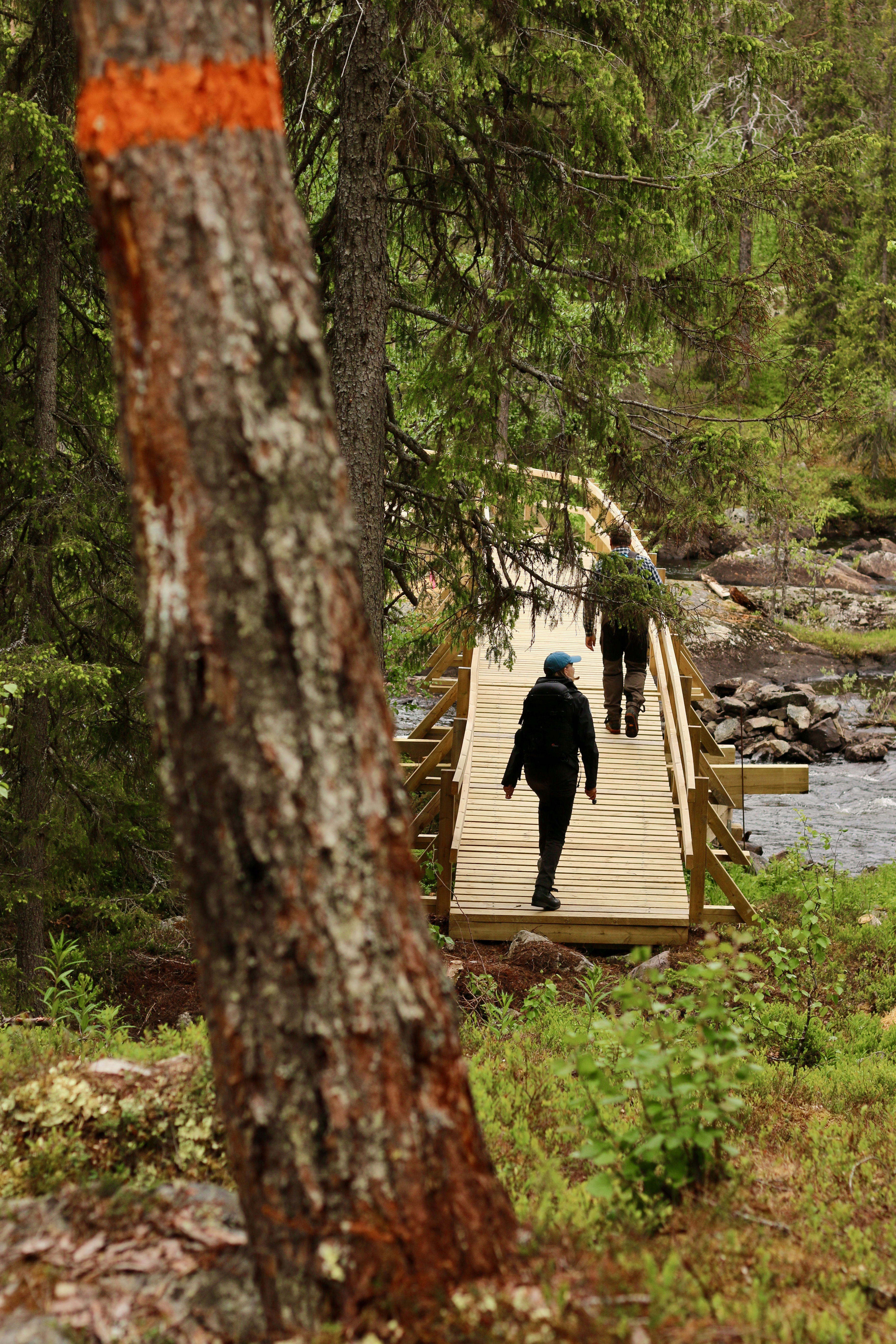 Snart passerar du en bro till och vandringen fortsätter på västra sidan om Matskansjön. I bägge sjöarna finns gott om öring, abborre och röding. Möjlighet till fiske finns i hela Matskanområdet om man löser statligt fiskekort. Det kan du göra på NatureIT.