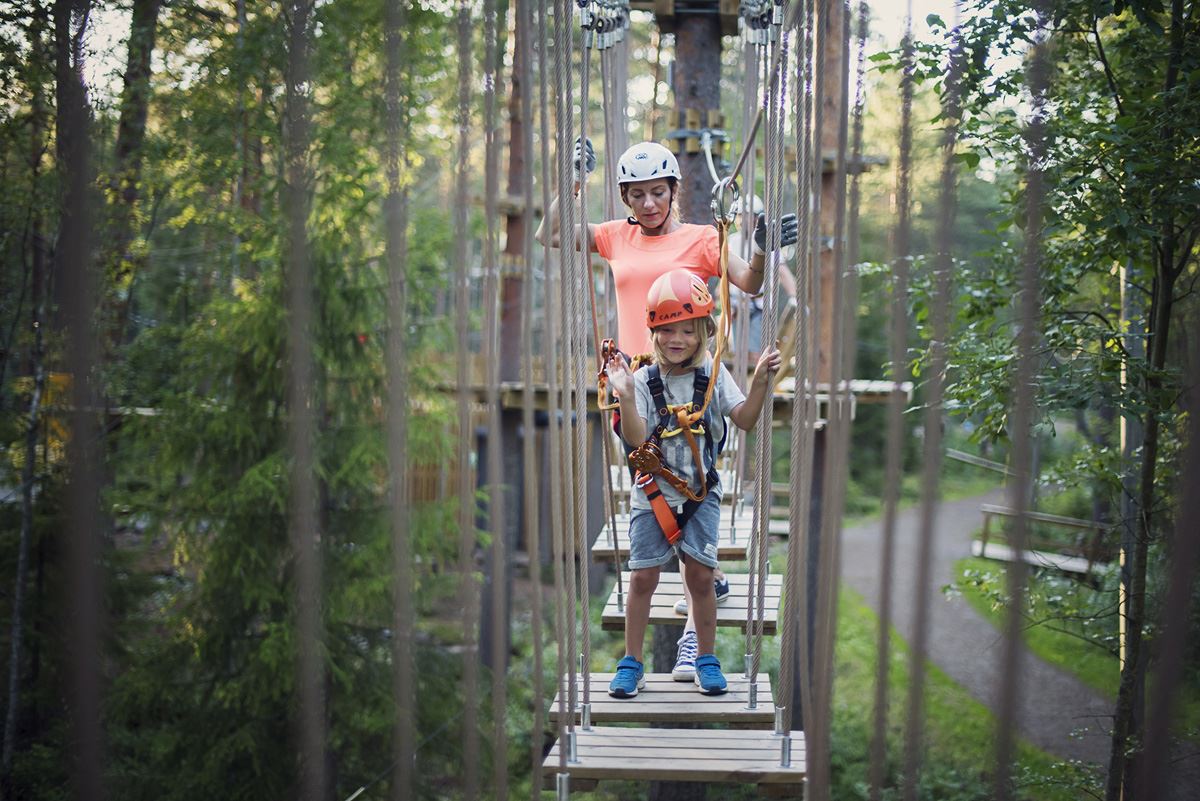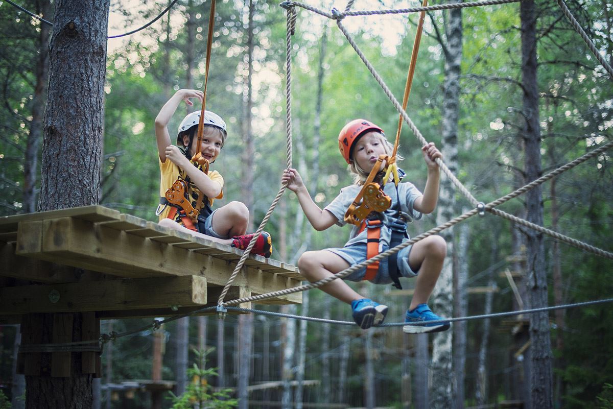 På Zip Adventure Park väntar äventyr för alla – från höghöjdsbanor i olika svårighetsgrader till roliga aktiviteter på marken som 5-kamp, fotbollsminigolf, bungee-trampolin, Archery Wars och Gellyball.