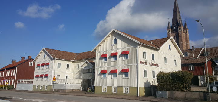 Ett centralt hotell i Gamla stan med vacker utsikt över Vänern