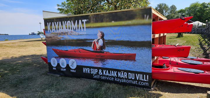 Hyr kajak i Åmål. Att paddla kajak med vänner och familj i Vänern är en fridfull upplevelse och en kul aktivitet. För nybörjare är det lätt att testa på kajakpaddling och samtidigt hålla sig nära stranden. Att paddla kajak är ett utmärkt alternativ till att uppleva Åmål istället för att cykla eller promenera. Det är dessutom ett riktigt härligt sätt att uppleva Åmål från vattnet. Att hyra kajak och SUP vid gästhamnen Åmål är smidigt, billigt och flexibelt med det obemannade konceptet KAYAKOMAT.